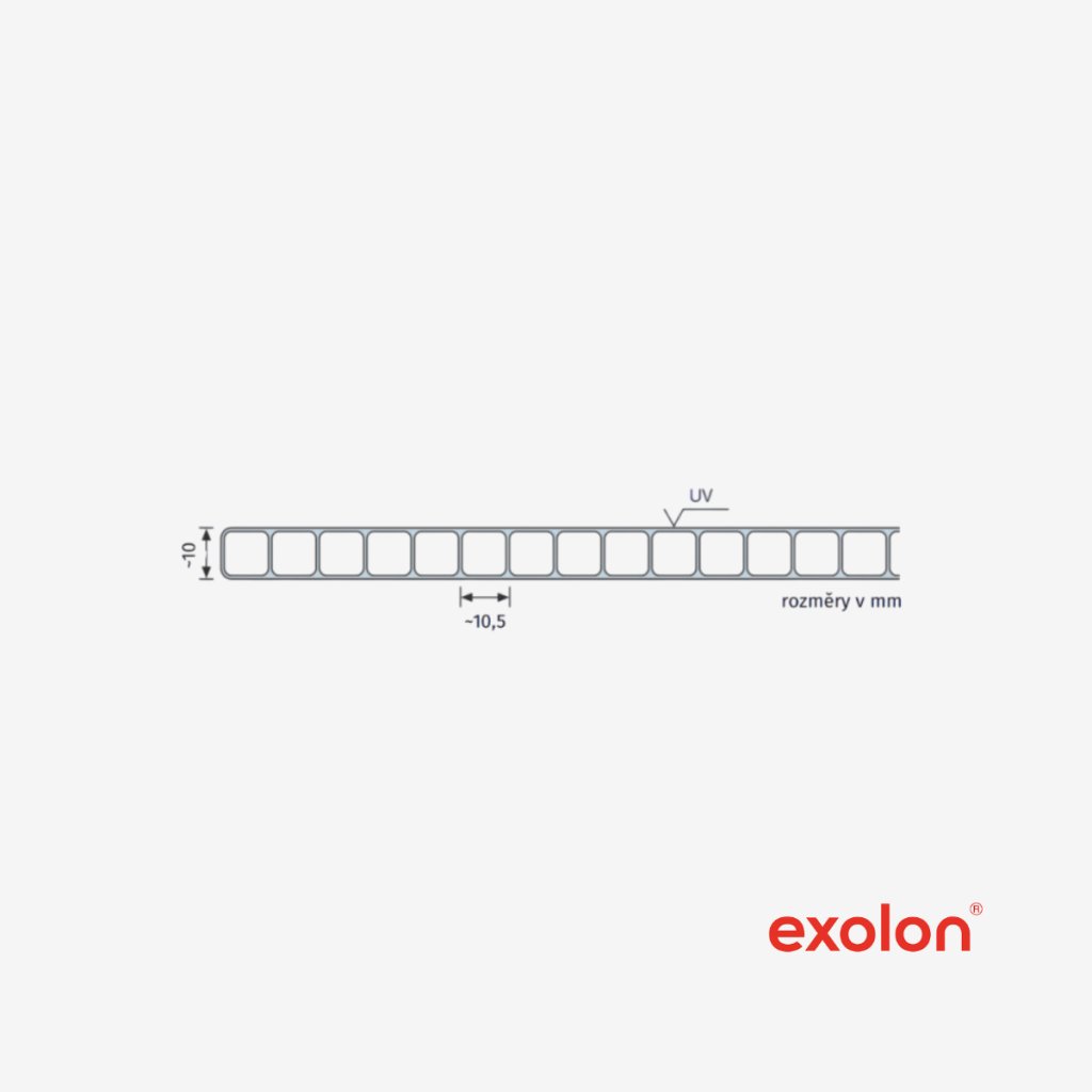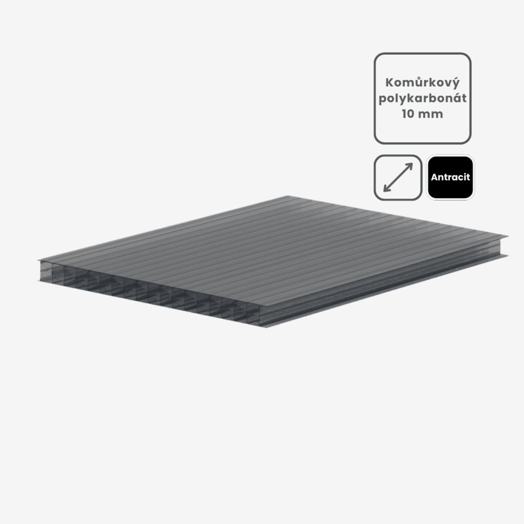 Dvoustěnná polykarbonátová deska o tloušťce 10 mm od kvalitních evropských dodavatelů. Jedná se o desku s označením MULTICLEAR® BOX 2 WALL. Tyto polykarbonátové desky kombinují vysokou propustnost světla, tepelnou izolaci a vysokou odolnost proti povětrnostním vlivům. Desky jsou lehké, odolné proti nárazu a snadno se instalují. Jednostranná UV stabilizace zajišťuje při instalaci v exteriérovém prostředí dlouhodoubou životnost a stálost optických vlastností. Záruka 10 let.