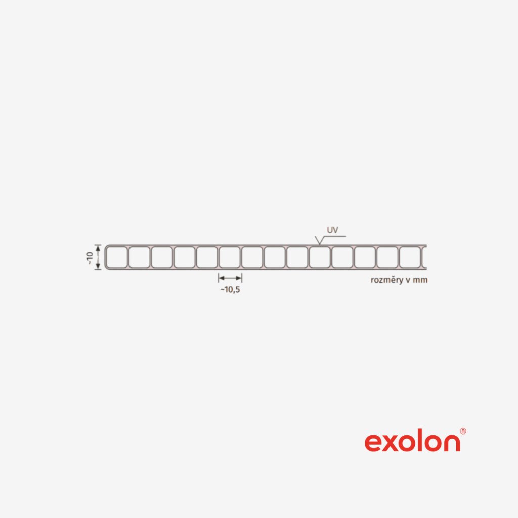 Exolon® 2/10 je dvoustěnná polykarbonátová deska o tloušťce 10 mm v opálové (mléčné) barvě. Kombinuje vysokou propustnost světla, výbornou tepelnou izolaci a odolnost proti povětrnostním vlivům. Deska je lehká, prakticky nerozbitná a snadno se instaluje. Díky jednostranné UV stabilizaci si dlouhodobě uchovává optické a mechanické vlastnosti při venkovním použití.