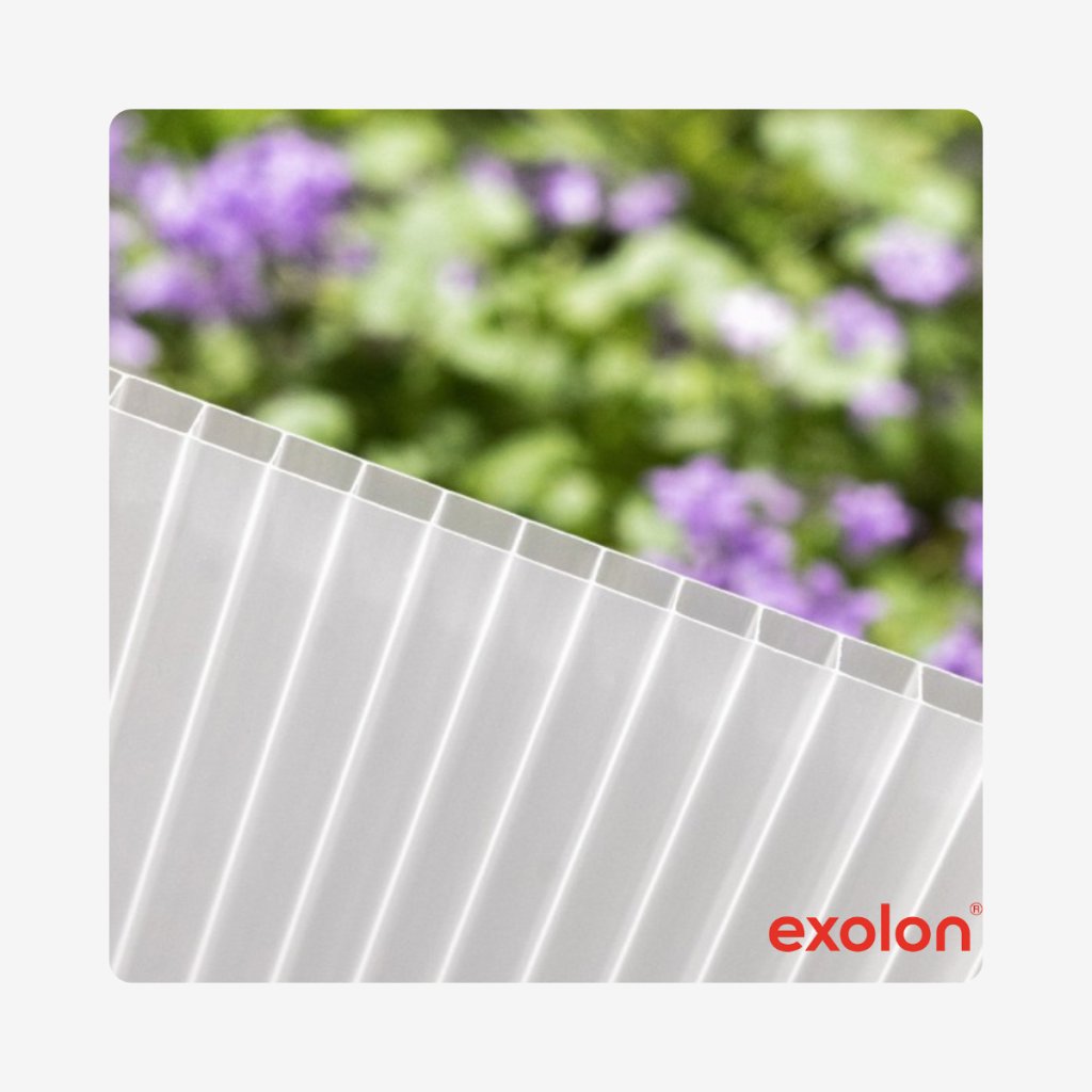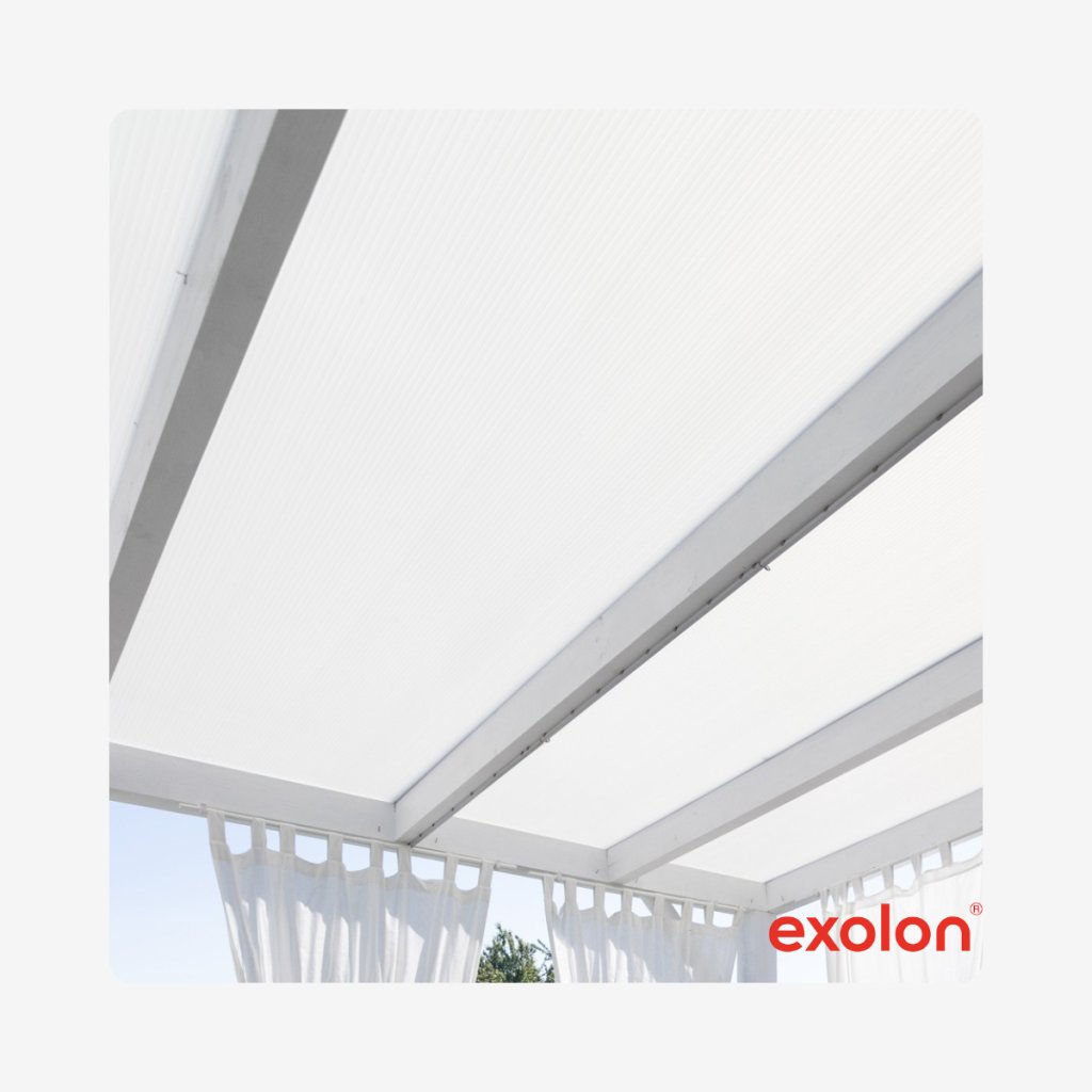 Dvoustěnný komůrkový polykarbonát Exolon® 2/10 o tloušťce 10 mm je ideálním řešením pro přístřešky, pergoly a další aplikace vyžadující kombinaci vysoké propustnosti světla, dobré tepelné izolace a mechanické odolnosti.