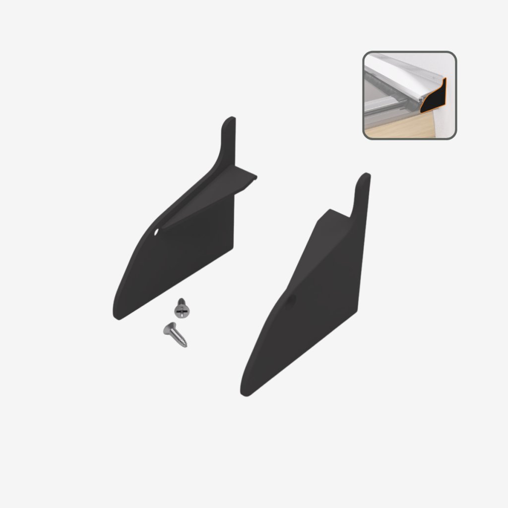 Tato sada plastových krytek slouží k zakončení montáže hliníkového stěnového profilu typu S. Krytky dotahují vizuální celek k dokonalosti a zabraňují pronikání nečistot do profilu.
