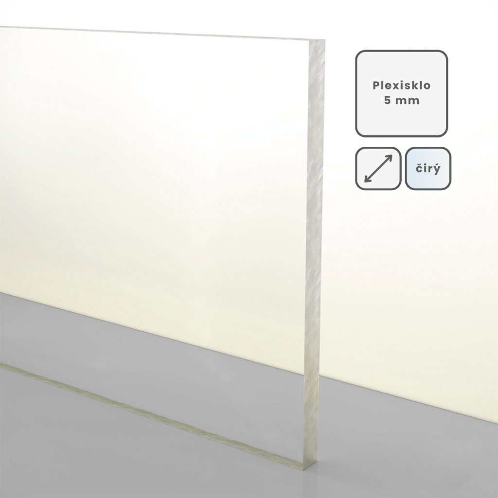 Čiré plexisklo tloušťky 5 mm patří k nejpoužívanějším deskám z PMMA. Povrch je z obou stran hladký a vysoce lesklý, chráněný ochrannou fólií. Desky jsou vyráběny metodou extruze – vytlačováním mezi dvěma rotujícími válci. Díky tomu mají minimální tloušťkovou toleranci a rovnoměrnou strukturu materiálu.