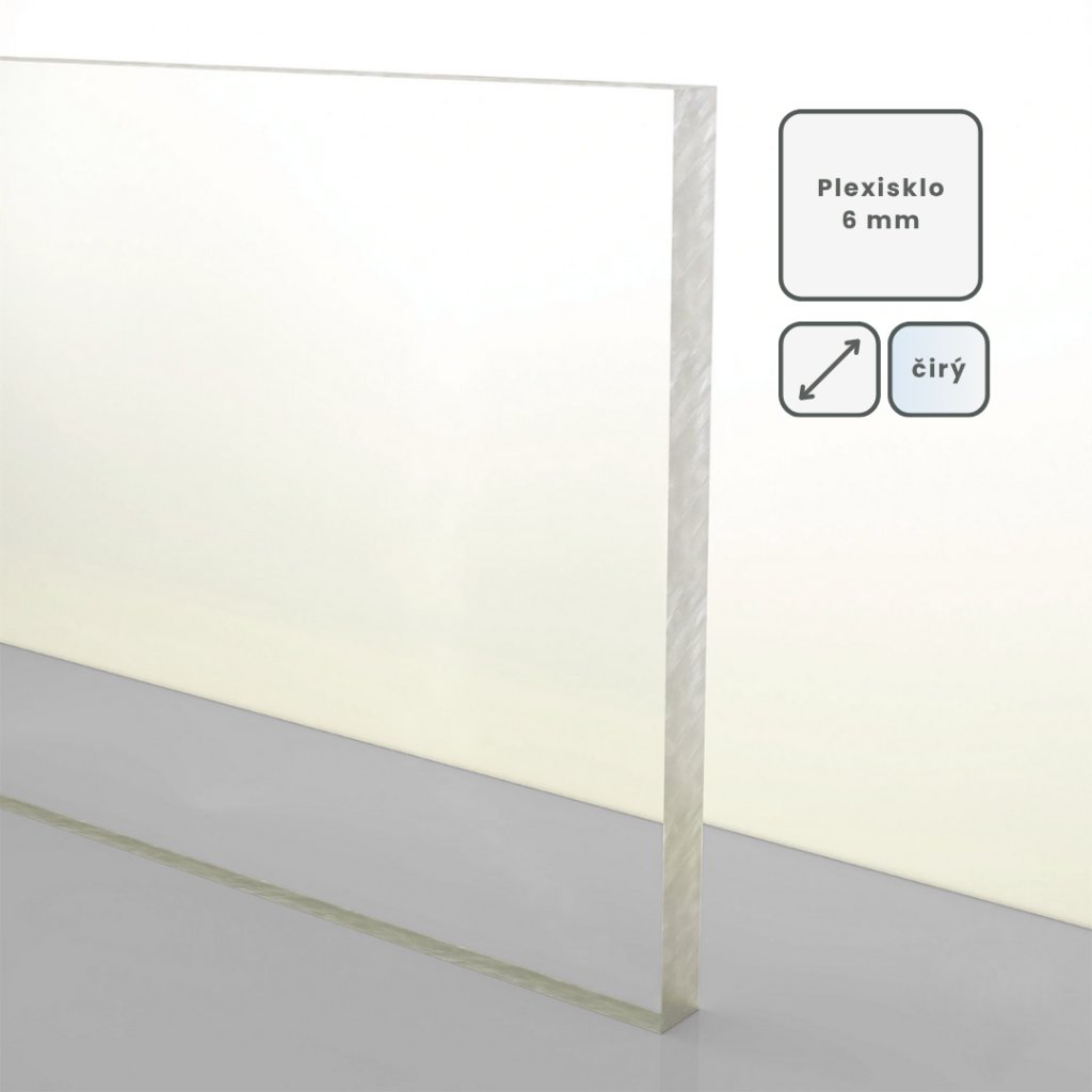 Čiré plexisklo tloušťky 6 mm patří k nejpoužívanějším deskám z PMMA. Povrch je z obou stran hladký a vysoce lesklý, chráněný ochrannou fólií. Desky jsou vyráběny metodou extruze – vytlačováním mezi dvěma rotujícími válci. Díky tomu mají minimální tloušťkovou toleranci a rovnoměrnou strukturu materiálu.