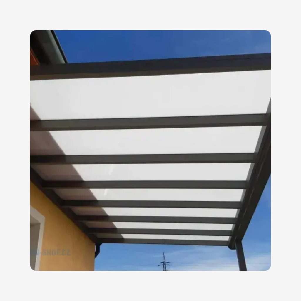 Opálový polykarbonát poskytuje příjemný mléčný efekt, který propojuje soukromí, rozptyl světla a vysokou mechanickou odolnost. Desky s 2× UV ochranou jsou určeny pro dlouhodobé venkovní použití – nezežloutnou, neztrácejí pevnost a garantují vysokou životnost. Polykarbonát lze teple i za studena ohýbat a přesně opracovávat. Z obou stran je chráněn ochrannou fólií.
