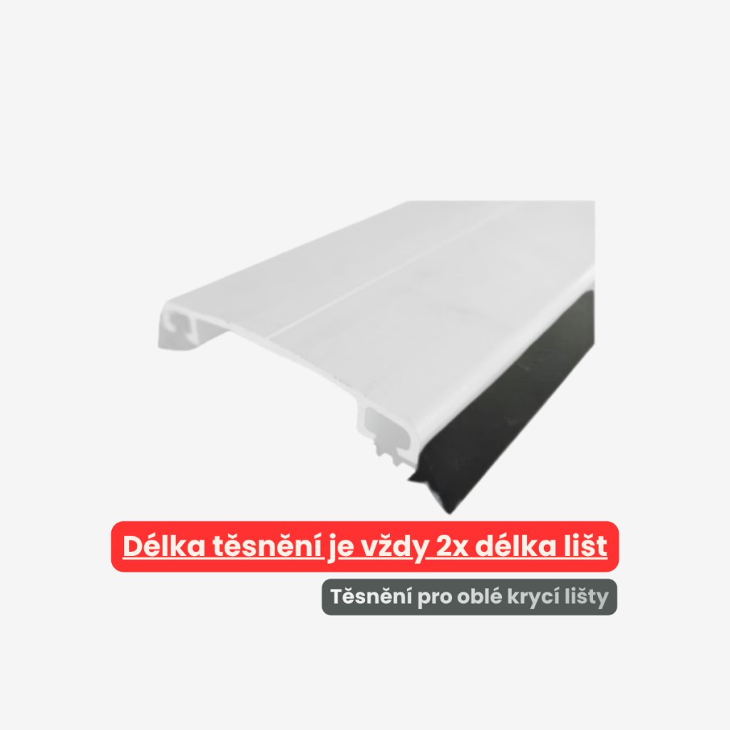 ⚠️ Pro správnou montáž doporučujeme zakoupit 2× délku těsnění než délku lišty. Těsnění není vhodné pro plexisklo – pro tyto aplikace doporučujeme silikonové varianty.