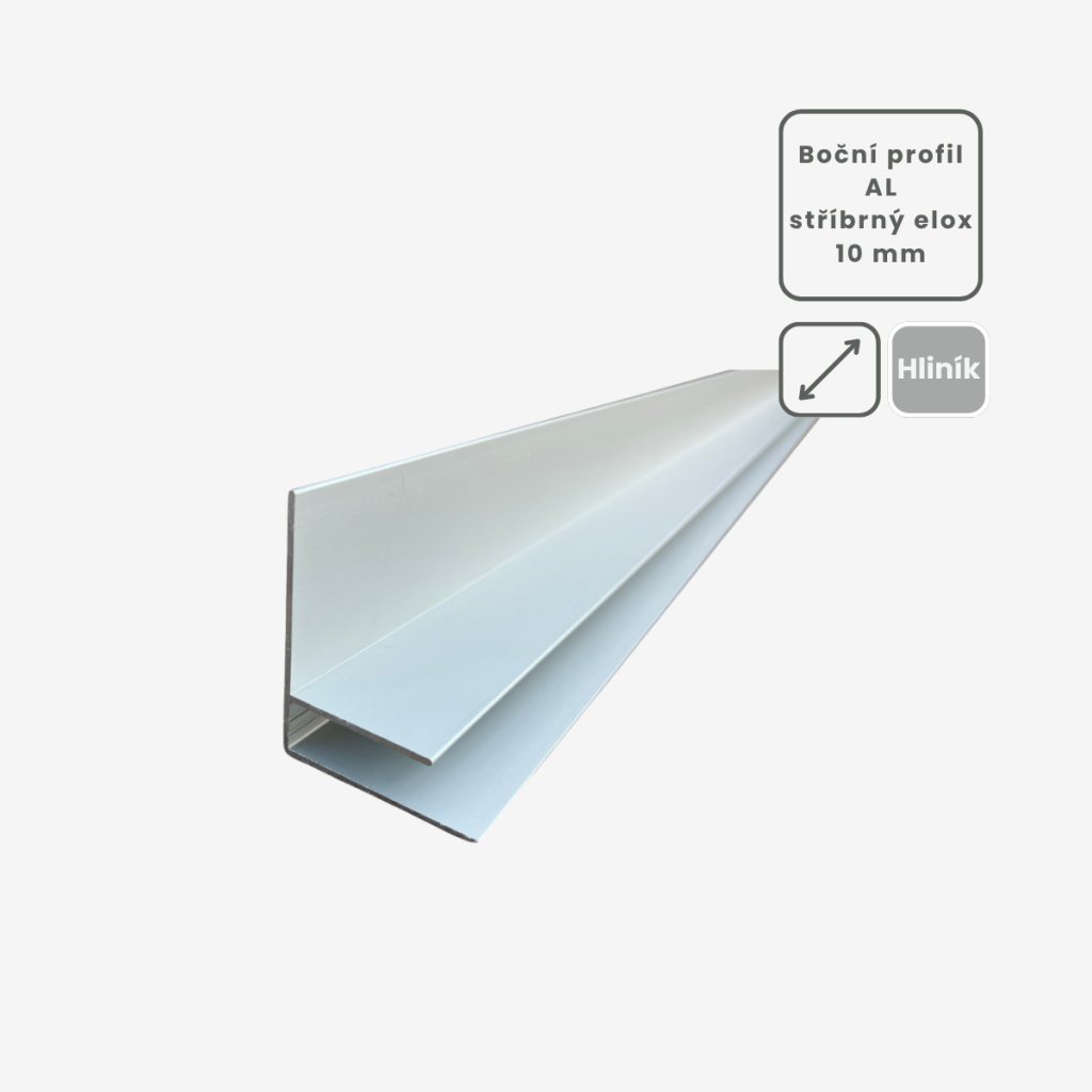 Bočný AL „F“ profil 10 mm – strieborný elox
