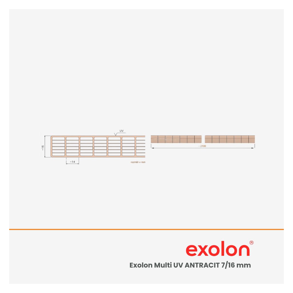 16 mm, antracitová farba, priepustnosť svetla až 20 %, UV ochrana, kvalitné spracovanie, dostupnosť v rôznych dĺžkach, výroba aj v Kadani.