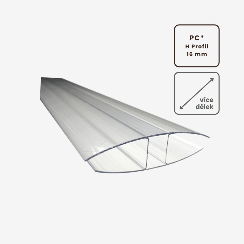 Tento polykarbonátový profil typu "H" se používá pro podélné spojení dvou desek tloušťky 16 mm v interiéru. V exteriéru pouze v případě, že se jedná o instalaci stěn. Na střechy (přístřešky) doporučujeme vždy použít krycí lišty s těsněním.