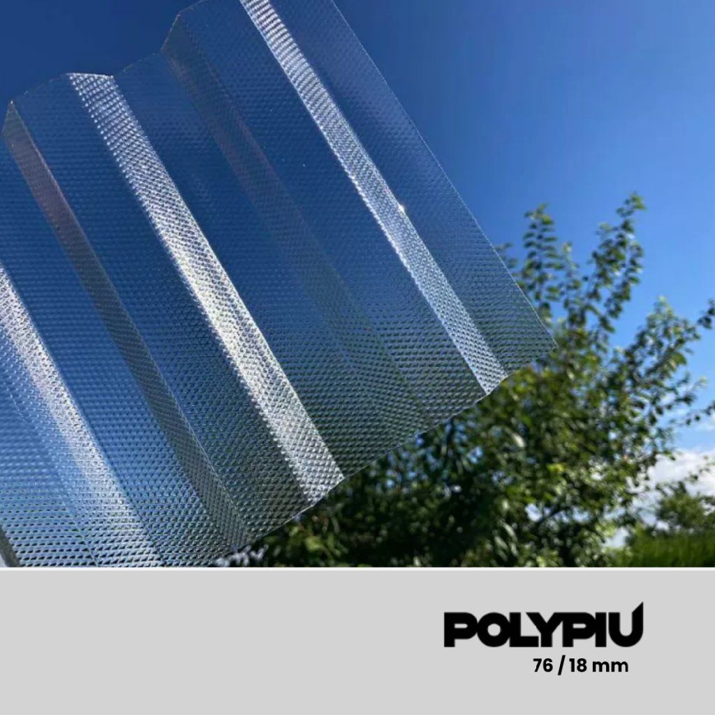 Trapézový polykarbonát 76/18 čirá struktura mikroprizma PolyPiú 0,9mm