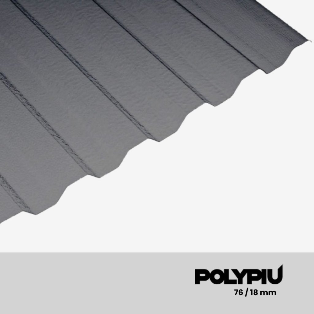 Trapézový polykarbonát LightPiù s tloušťkou 1 mm a strukturovaným povrchem v šedém antracitovém provedení je ideálním řešením pro aplikace s požadavkem na elegantní design, účinné stínění a vysokou mechanickou odolnost.