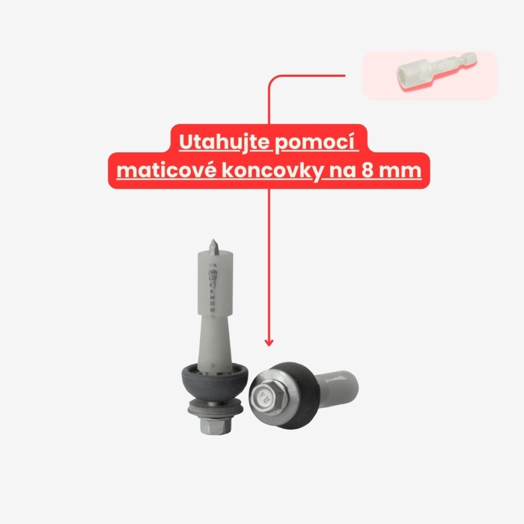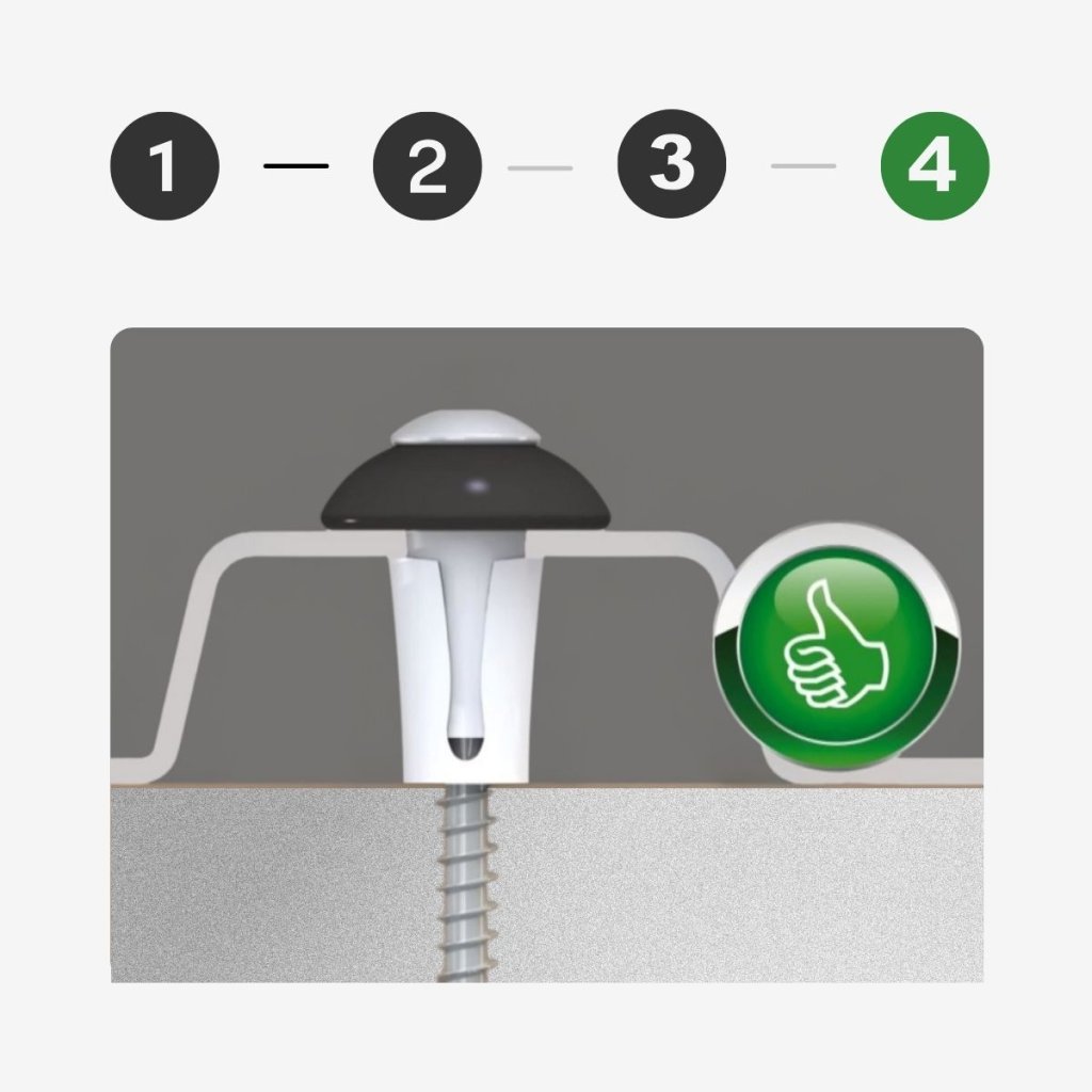 TIP: Dbejte na to, aby se celá plastová hmoždinka protlačila deskou – nad deskou má zůstat pouze těsnicí klobouček.